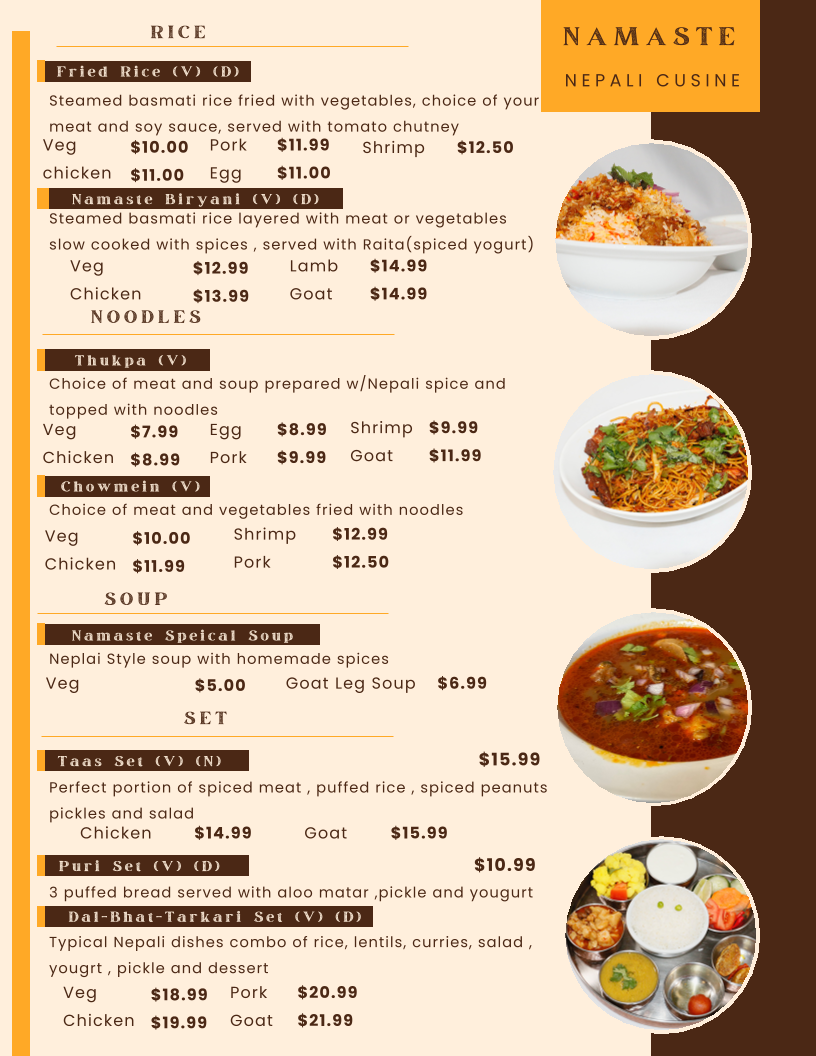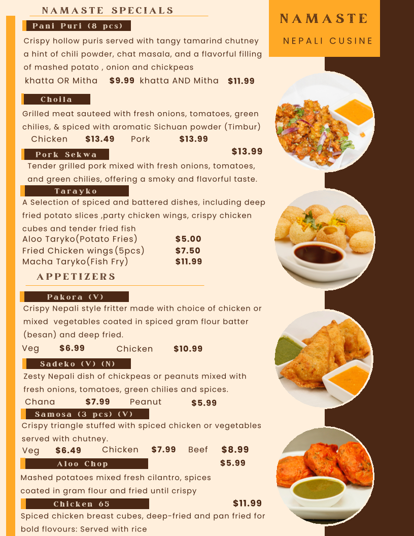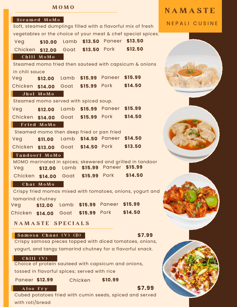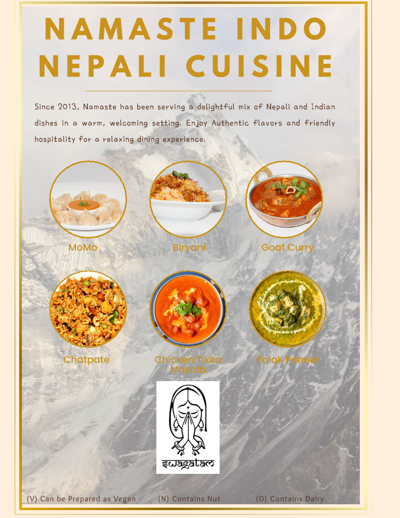 At Namaste Indo-Nepali Cuisine- Columbus Menu, you're in for an unforgettable journey through the flavors of India and Nepal. Located at 1279 Morse Rd, Columbus, OH, this restaurant brings a delightful fusion of traditional and modern dishes that cater to all tastes. Whether you're craving hearty, aromatic curries, sizzling tandoori, or fresh, vibrant vegetarian options, every dish is made with authentic spices and love.