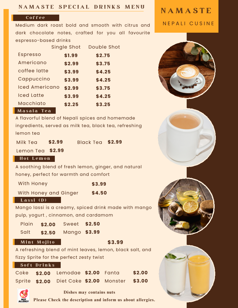 A flavorful blend of Nepali spices and homemade ingredients, served as milk tea, black tea, refreshing lemon tea